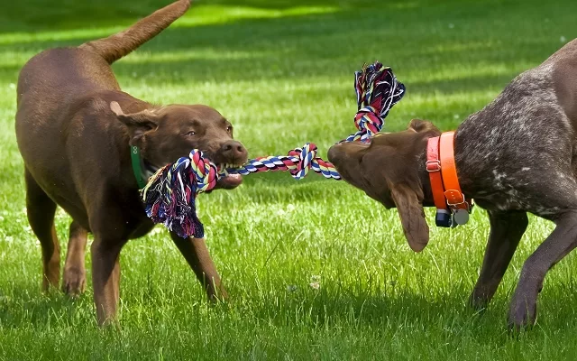 Nodurile nu doar că adaugă o textură interesantă, dar oferă și o priză bună. Jucăria cu frânghie Primdog este perfectă pentru jocuri de tip tras de funie.