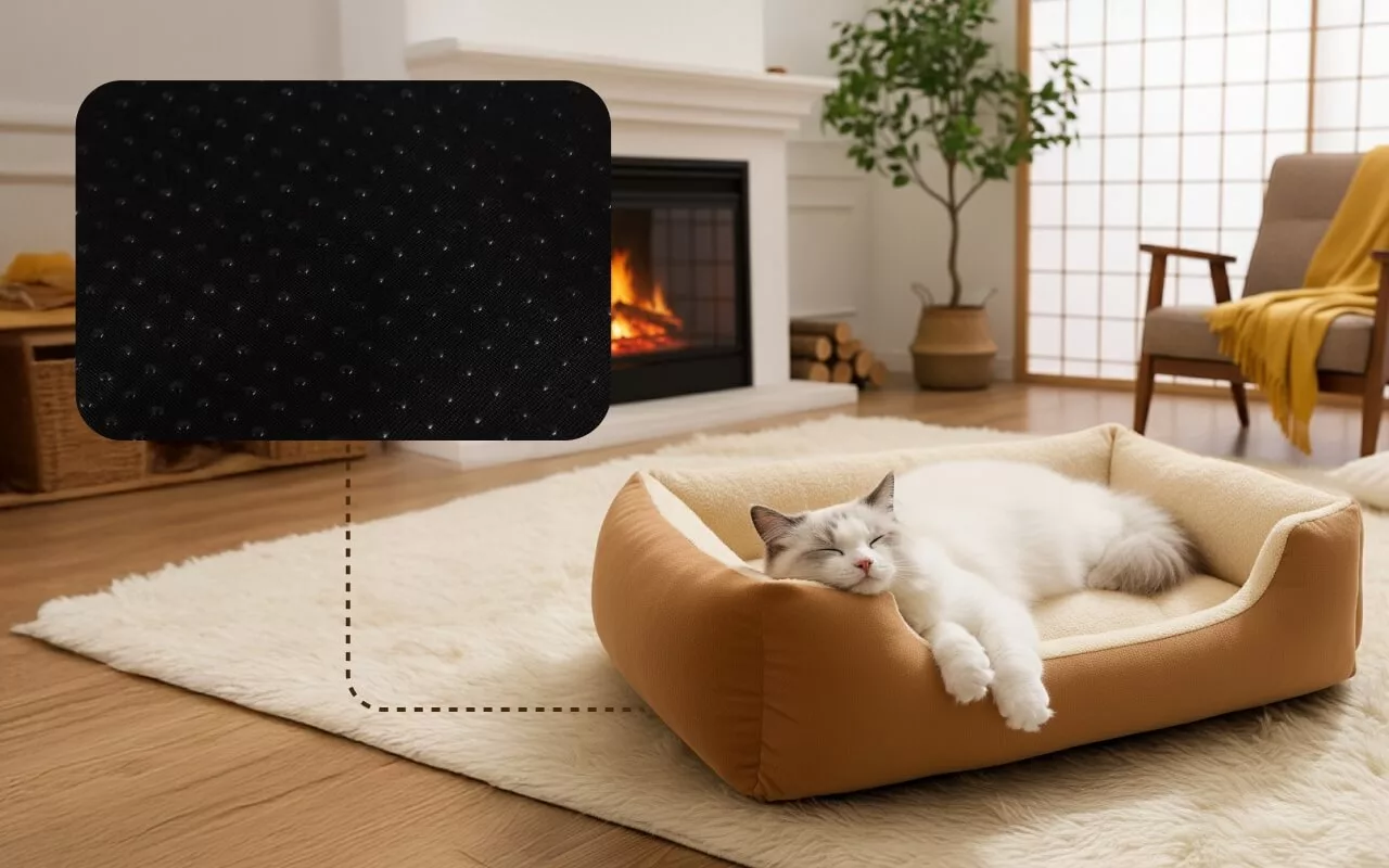 Baza antiderapantă menține așternutul stabil pe orice suprafață acasă. Animalele rămân în siguranță în timpul jocului sau somnului, fără să alunece.