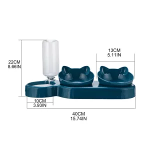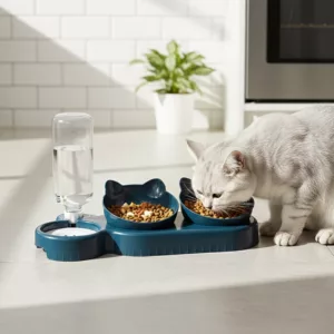 Set 3 în 1 boluri ridicate pentru pisici cu dozator de apă – Stație de hrănire pentru animale