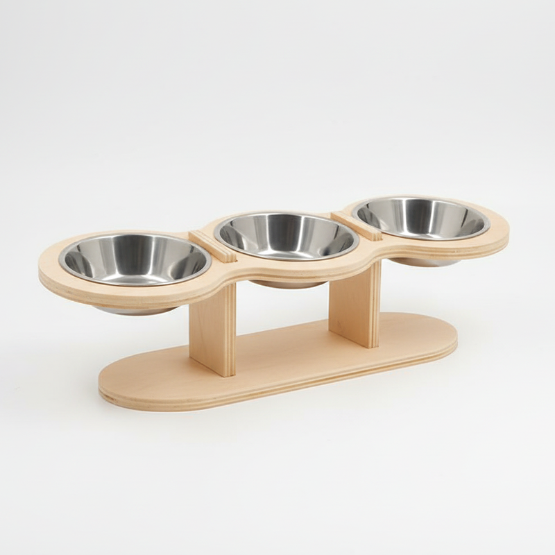 Bolurile Primdog păstrează mâncarea la un unghi perfect pentru consum. Oțelul inoxidabil face curățarea rapidă și simplă zilnic. Trei boluri oferă varietate pentru animale și mai puțin murdărie. Suportul din lemn menține totul stabil și arată elegant într-un interior.