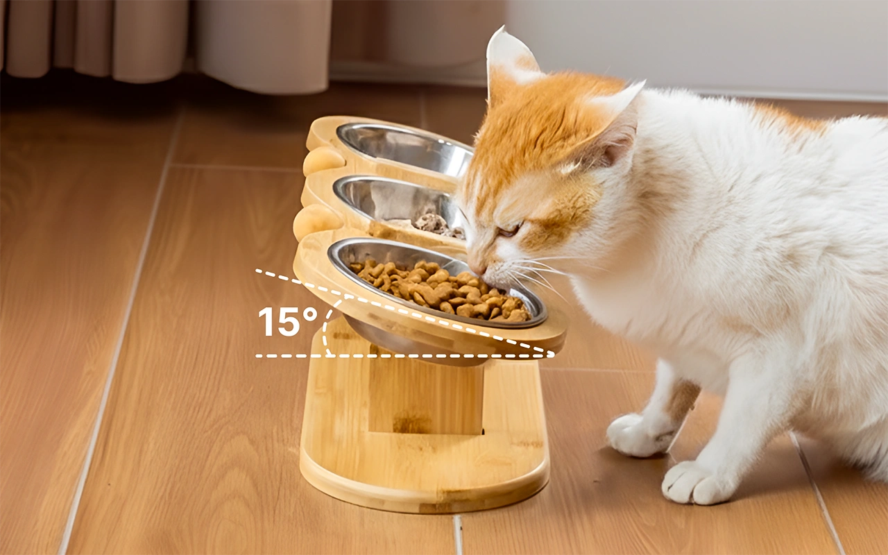 Mâncatul înclinat ajută pisicile să înghită ușor și confortabil. Acest lucru reduce riscul de îne, balonare și ajută organismul să absoarbă mai bine nutrienții.