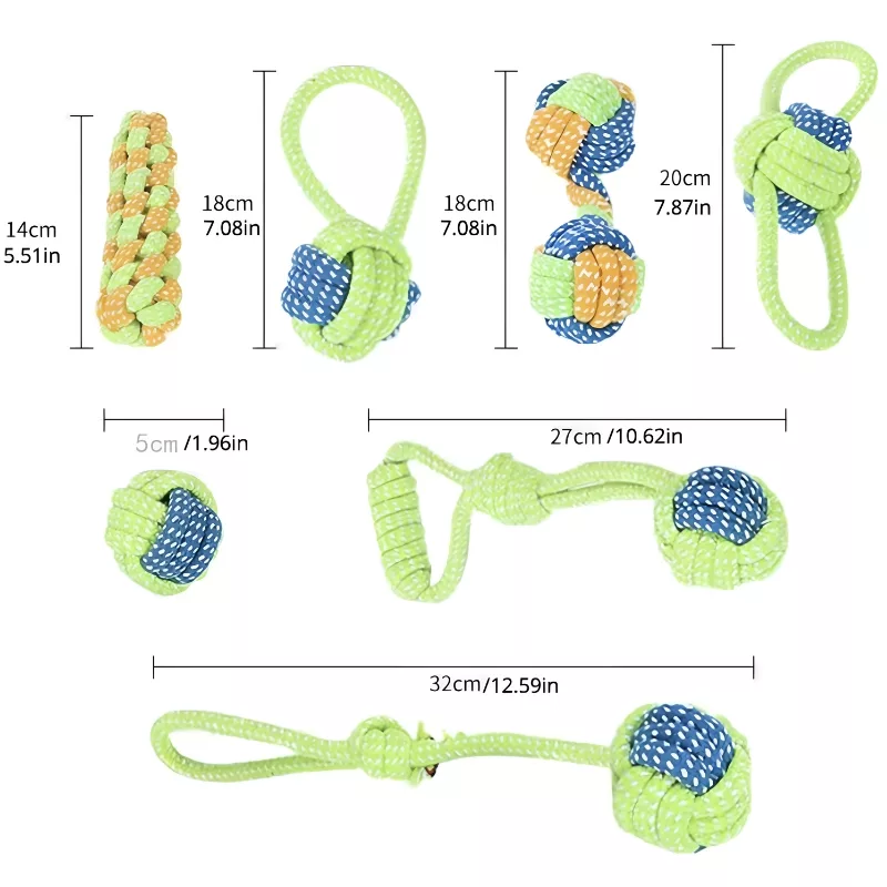 Set 7 Jucării Durabile din Frânghie pentru Ros Câini