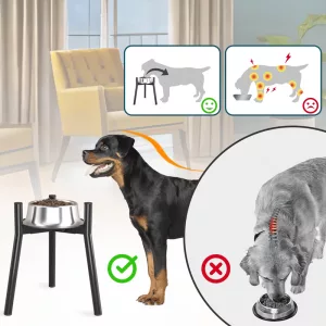 Când animalele de companie mănâncă din boluri tradiționale la nivelul podelei, adesea trebuie să se aplece. Acest lucru poate cauza blocarea alimentelor în gât și poate duce la sufocare. Suportul nostru pentru bol permite câinilor să mănânce într-o poziție mai naturală, verticală.
