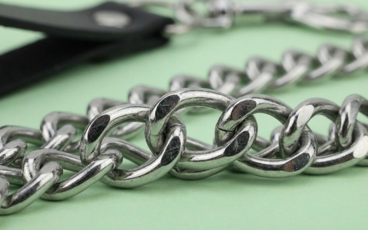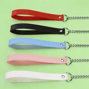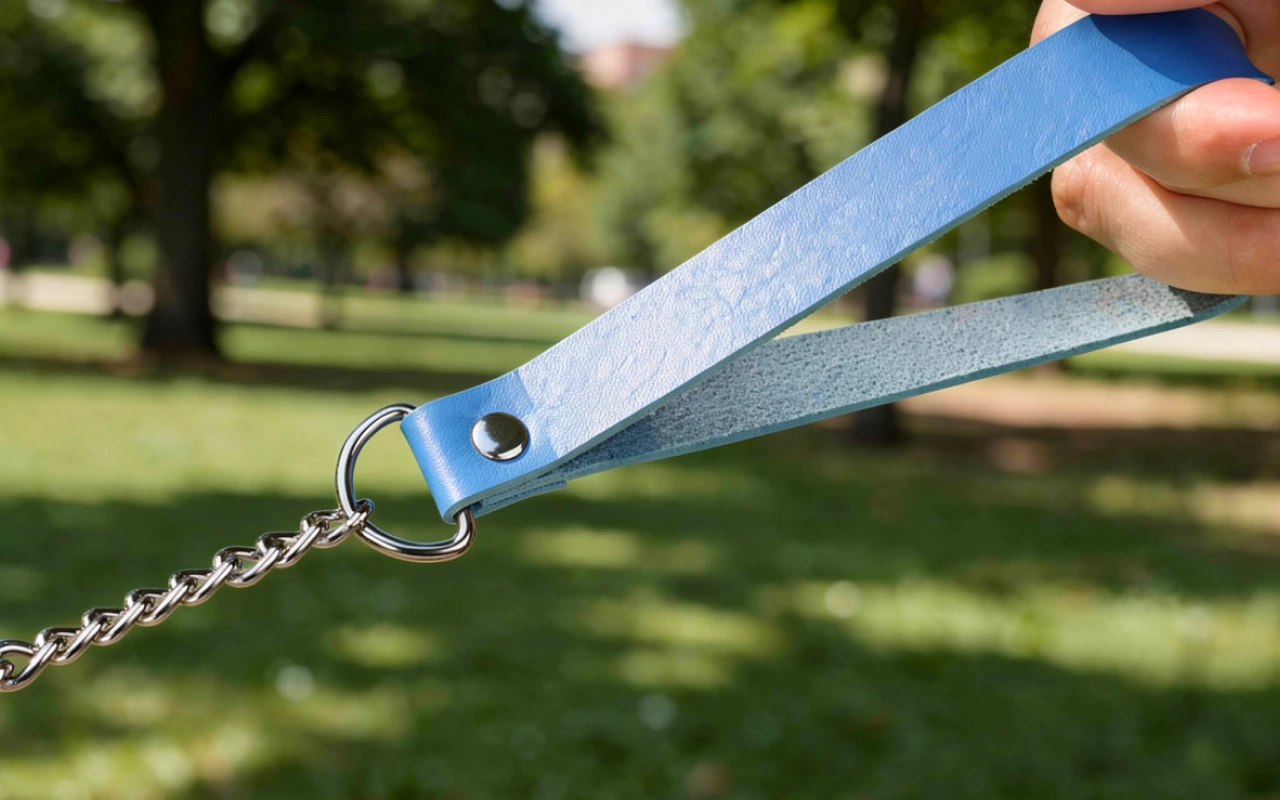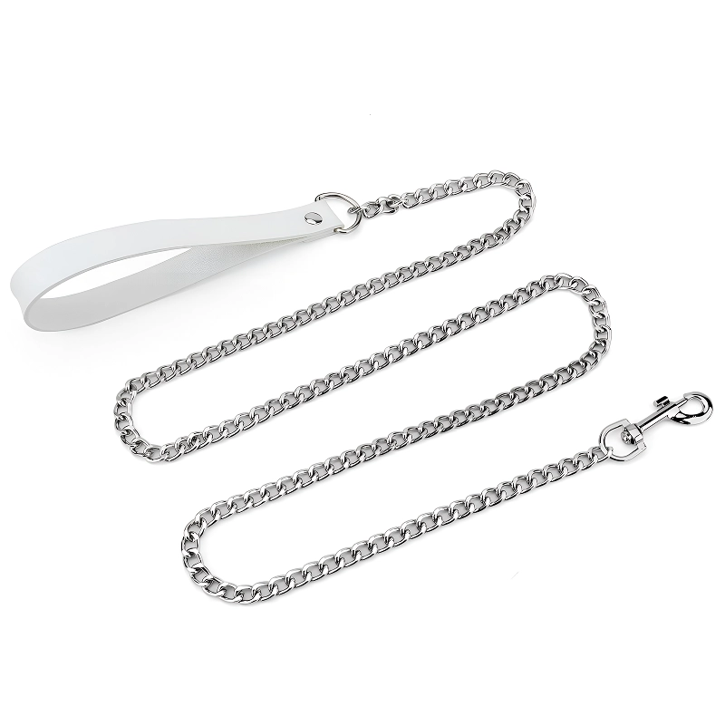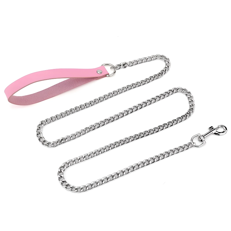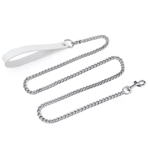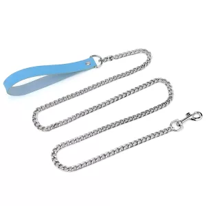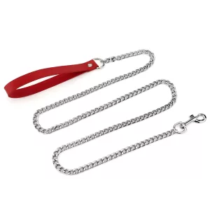 Lesă pentru câini din aliaj cu mâner din piele