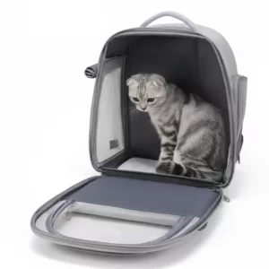 Geanta pentru pisici se potrivește perfect motanului meu pufos. Îi place să se uite prin fereastra-bulă și circulația aerului e foarte bună.
