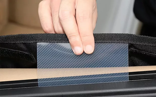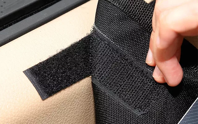Protectorul pentru ușă PrimDog vine cu benzi Velcro autoadezive, care pot fi aplicate ușor. Ele vor menține husa fixă indiferent de impact.