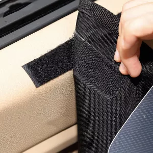 Protectorul pentru ușă PrimDog vine cu benzi Velcro autoadezive, care pot fi aplicate ușor. Ele vor menține husa fixă indiferent de impact.