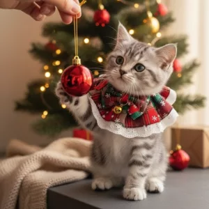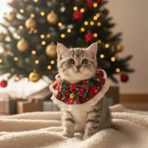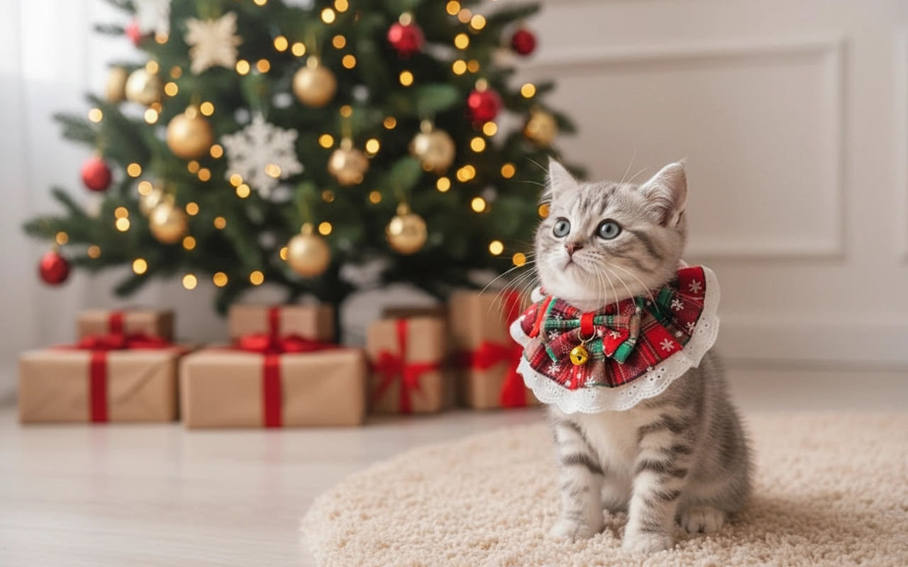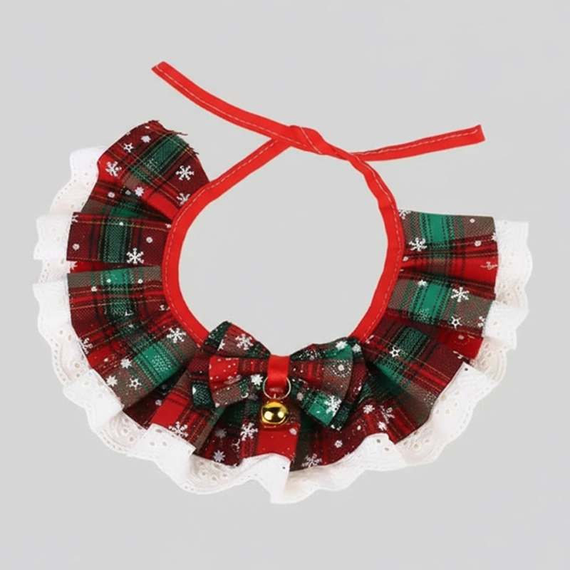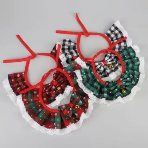 Guler bavețică pisică de Crăciun cu fundiță și clopoțel