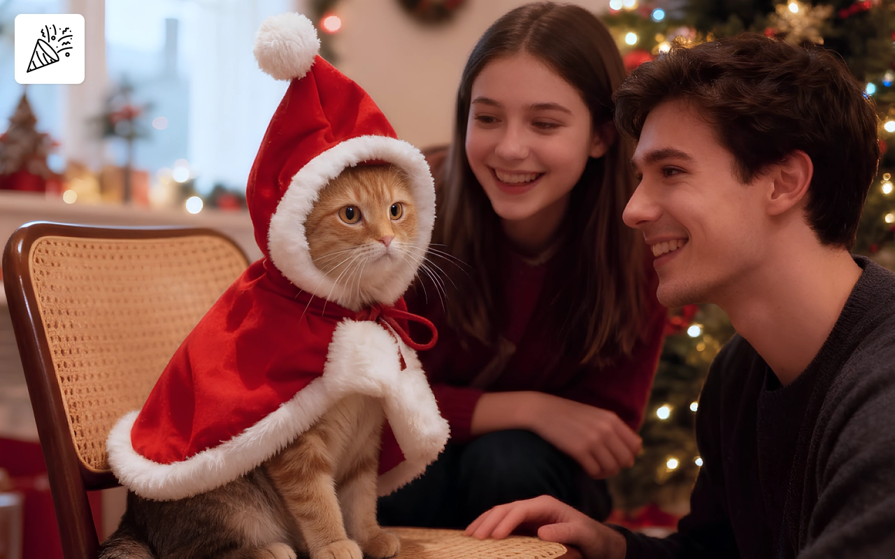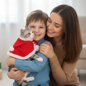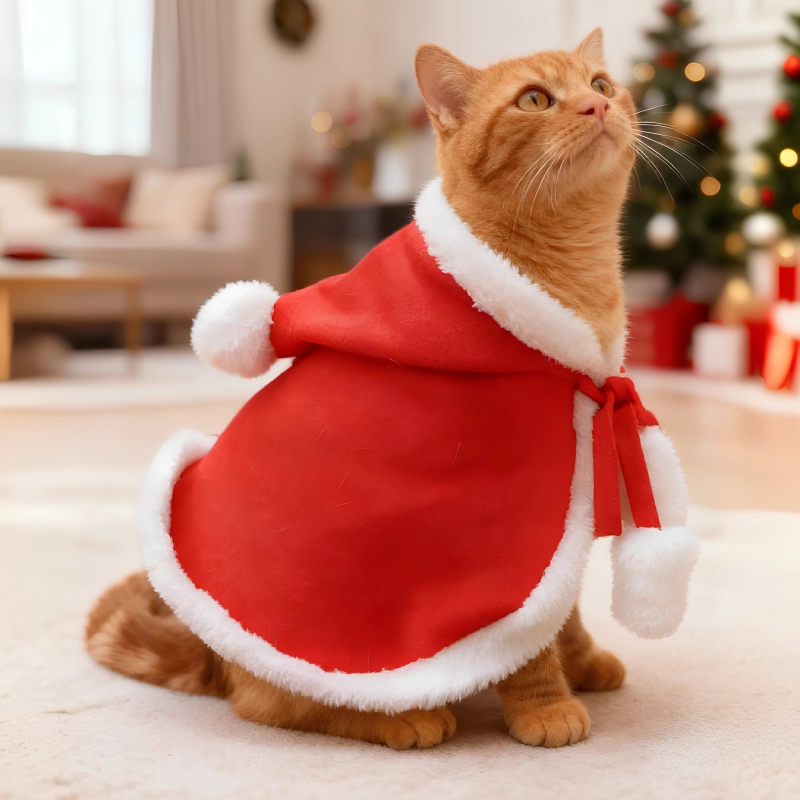 Costum de Crăciun pentru pisici – Pelerină cu glugă Moș Crăciun