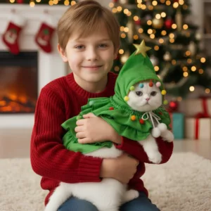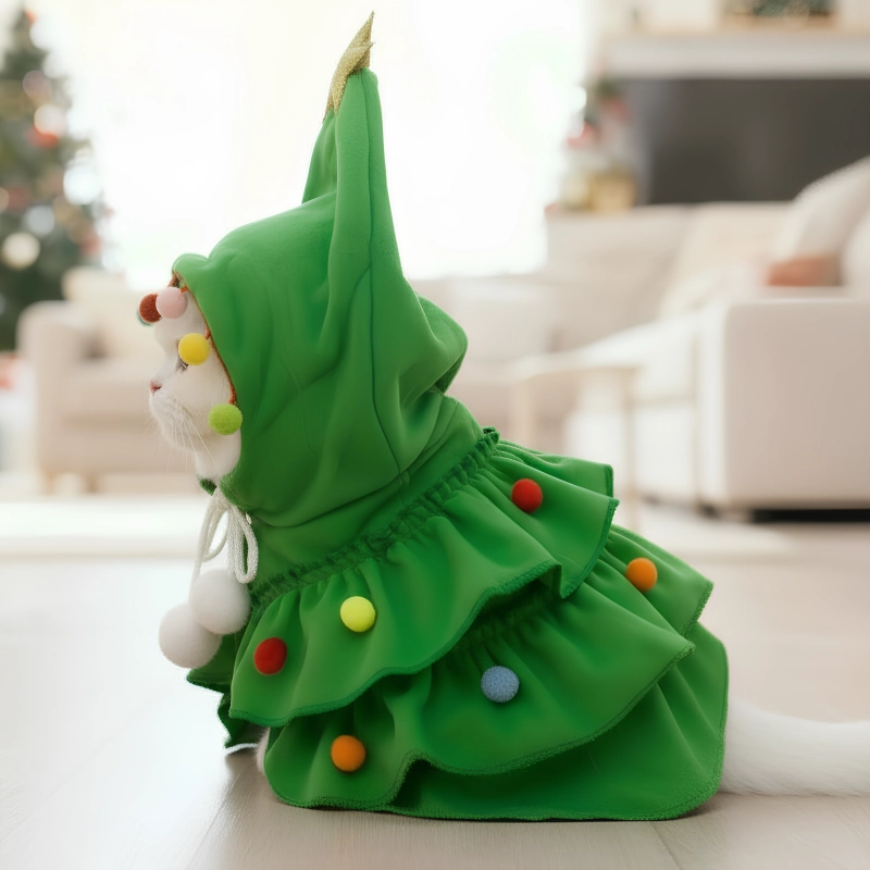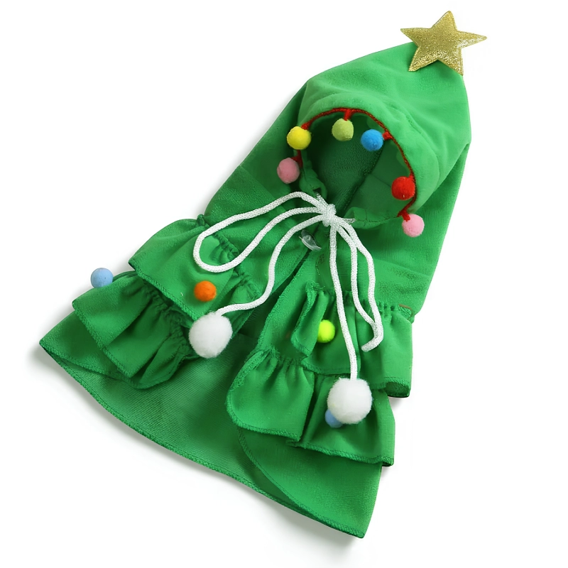 Costum de Crăciun pentru pisici – Pelerină cu glugă și stea