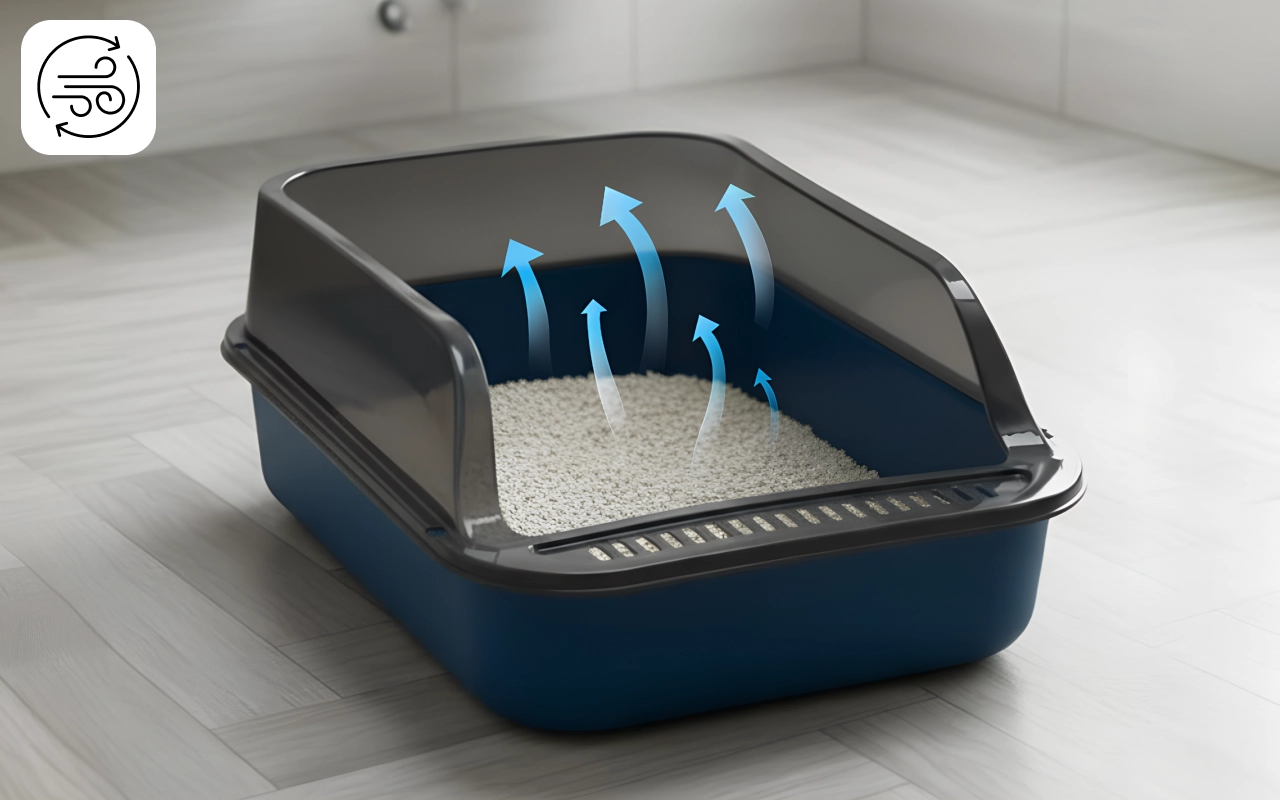 Structura deschisă permite circulația aerului și elimină rapid mirosurile neplăcute. Fiecare utilizare lasă casa cu un miros plăcut și primitor.