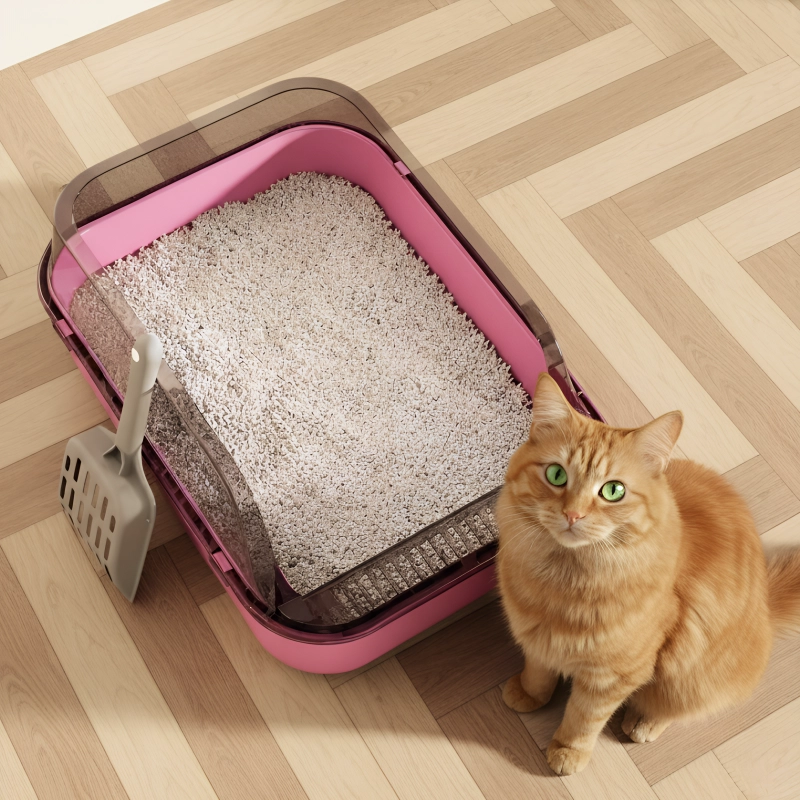Ladă de nisip pentru pisici cu pereți înalți și margini închise