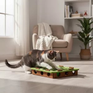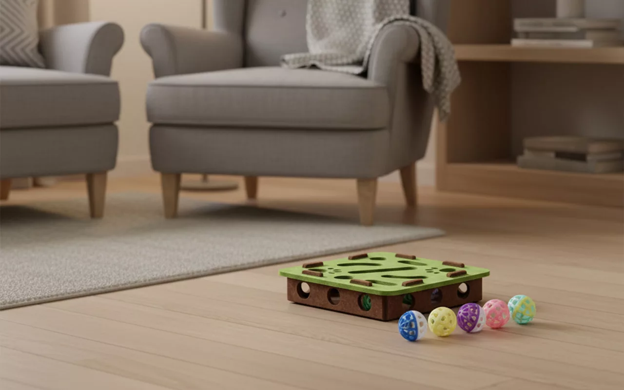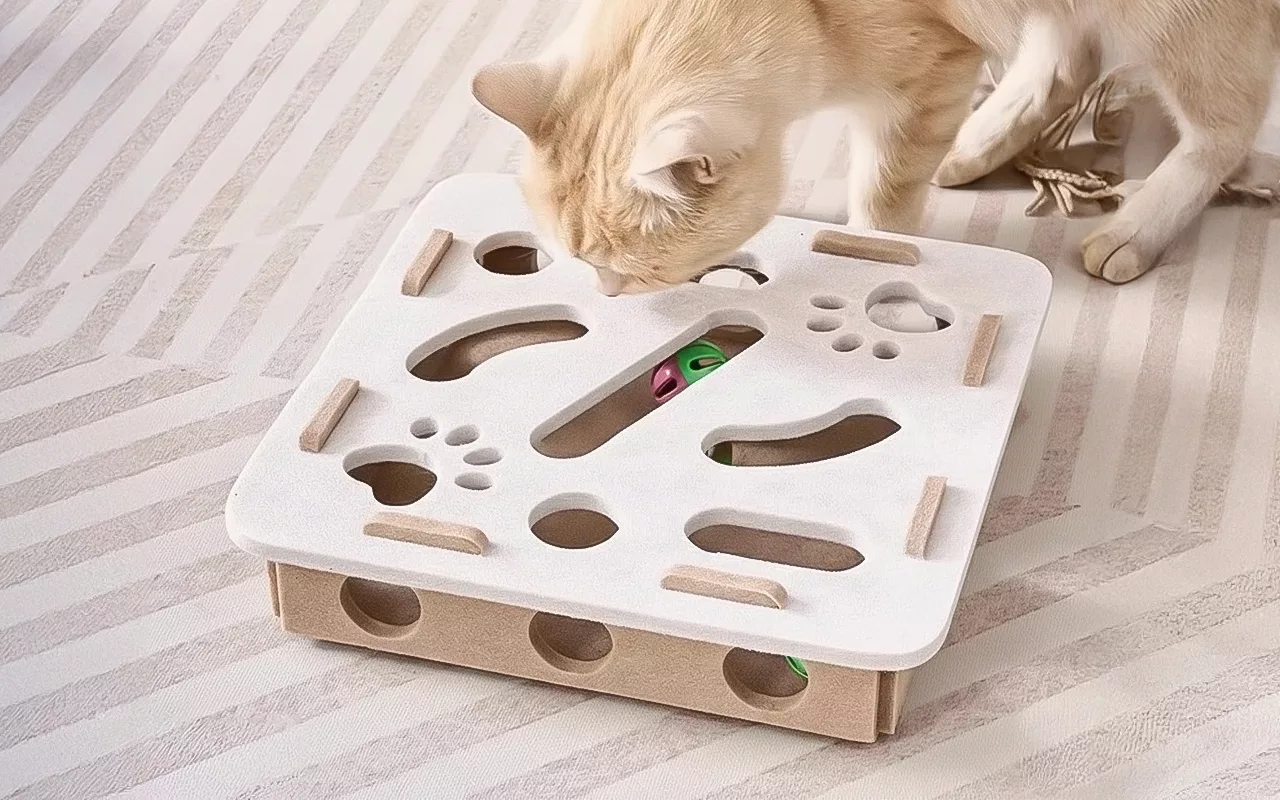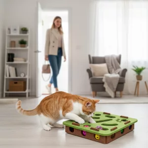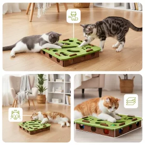 Curiozitatea rămâne puternică pe măsură ce animalele urmăresc mingile care se mișcă pe puzzle. Această jucărie inteligentă menține mintea ascuțită, făcând zilele în interior pline de distracție.