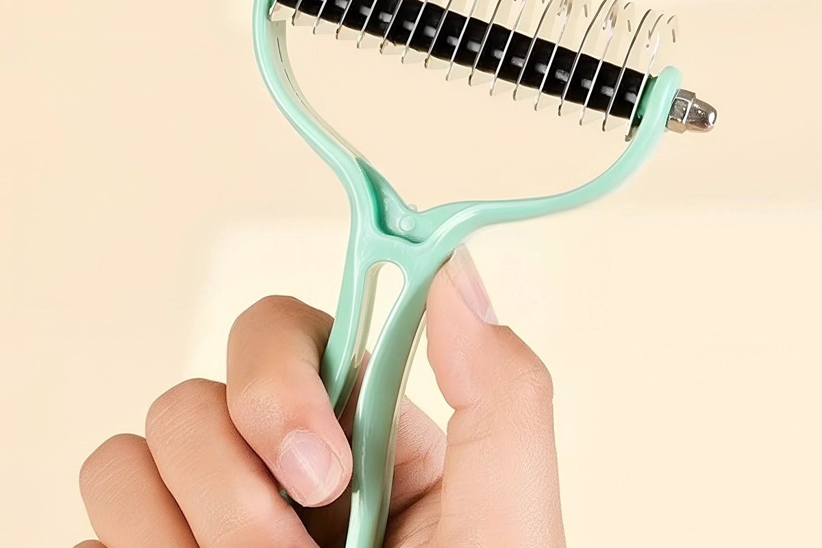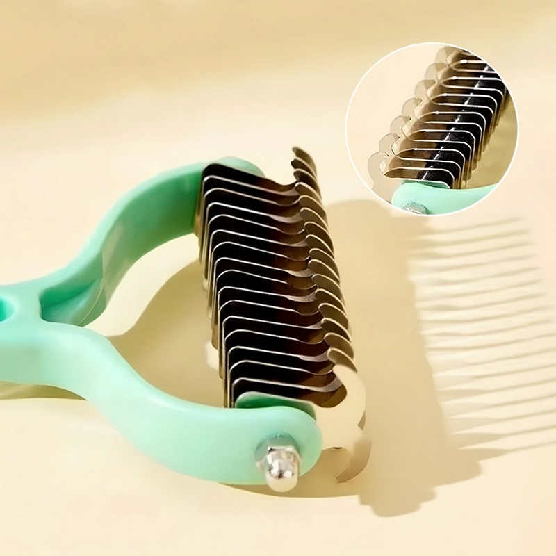Lamele ascuțite din inox alunecă lin prin straturile de blană. Desfac nodurile fără să tragă sau să zgârie pielea sensibilă.
