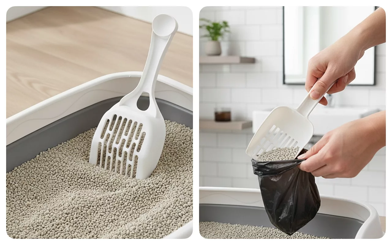 O lopățică utilă este mereu la îndemână pentru curățare rapidă. Materialul antiaderent face spălarea tăvii simplă și rapidă.