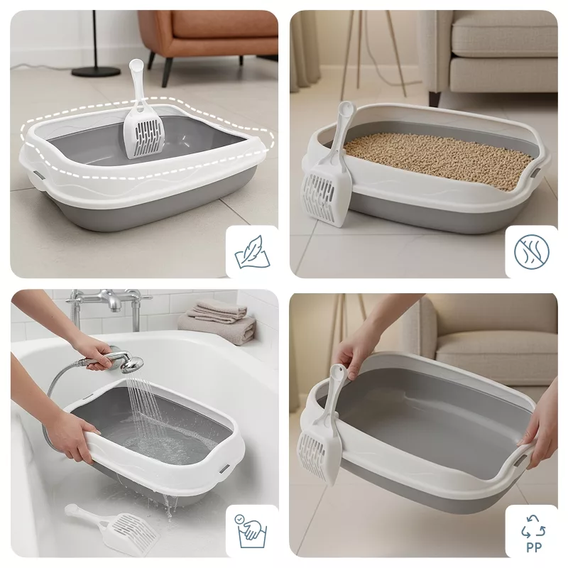 De acum, mizeria nu mai este o problemă pentru stăpânii de pisici. Litiera Primdog oprește împrăștierea nisipului, protejând podeaua. Designul spațios oferă animalului tău suficient loc pentru confort.