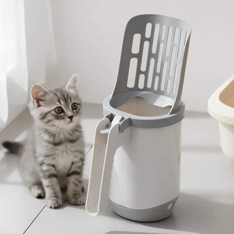 Mizeria a dispărut definitiv în jurul litierei! Folosesc lopățica, leg punga și o arunc. În sfârșit e ușor să curăț litiera pisicii mele.