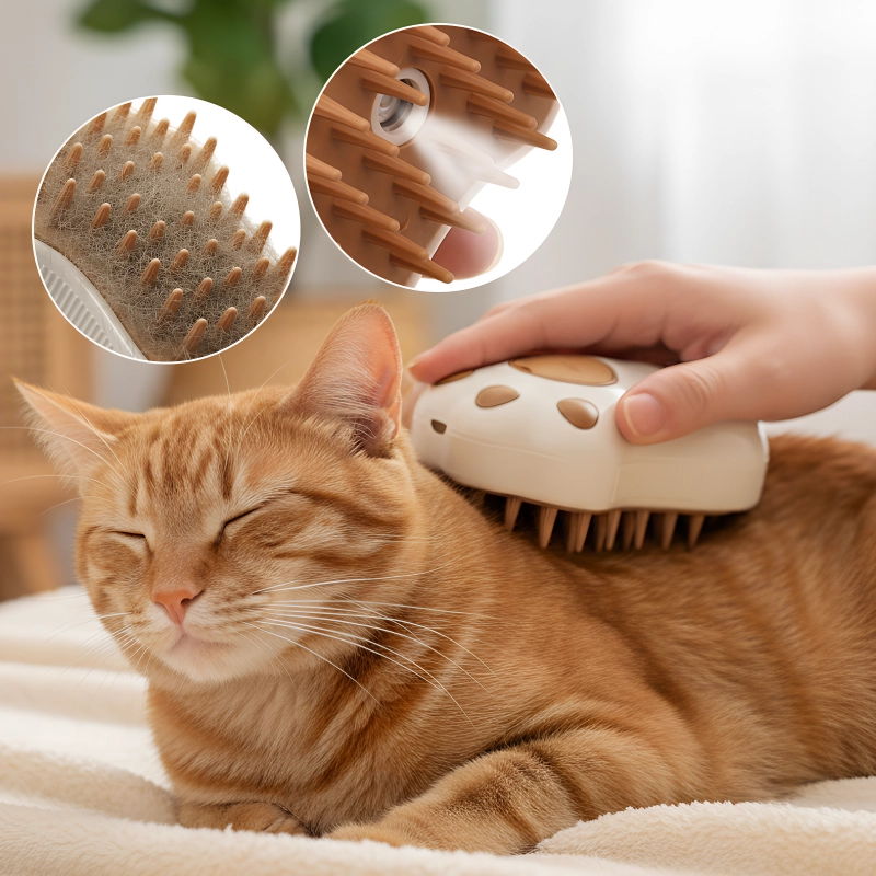 Perie electrică cu aburi și peri moi pentru masajul pisicilor