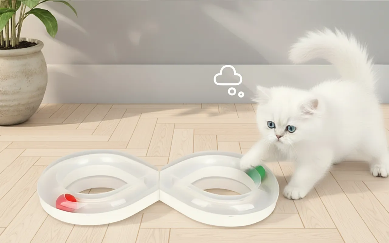 Curiozitatea crește când lăbuțele istețe urmăresc sferele rostogolite. Fiecare mișcare stimulează gândirea ascuțită și ajută la prevenirea stresului zilnic.