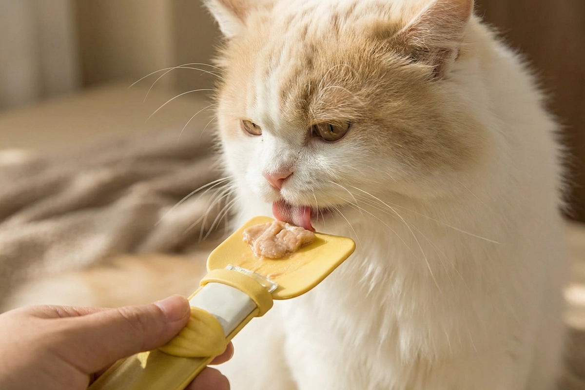 Lingură pentru hrănire cu stoarcere pentru pisici