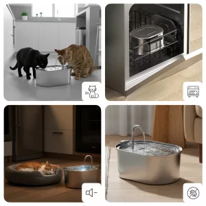 Fântână din oțel inoxidabil pentru pisici – Vas și distribuitor de apă cu filtru