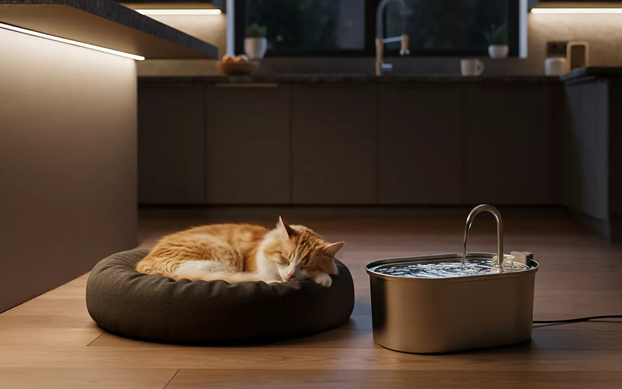 Fântâna îmi menține pisica fericită și sănătoasă. Bea mai multă apă acum și nu aud nimic când funcționează! Curățarea este foarte ușoară.