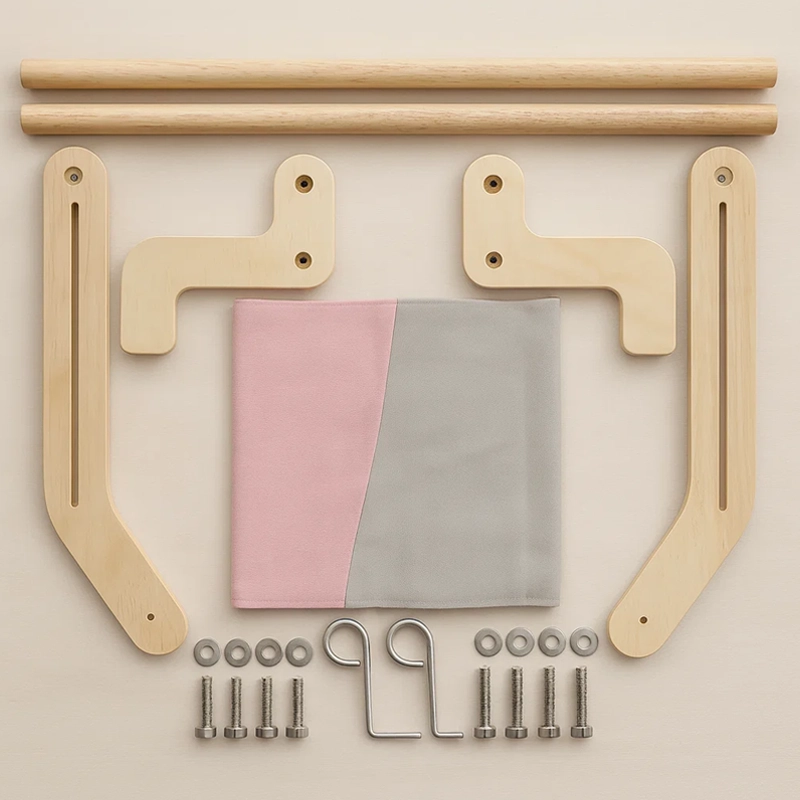 Nu sunt necesare șuruburi, așa că instalarea durează doar câteva minute. Poți să-l muți între pervazuri, lângă pat sau scaune fără bătaie de cap.