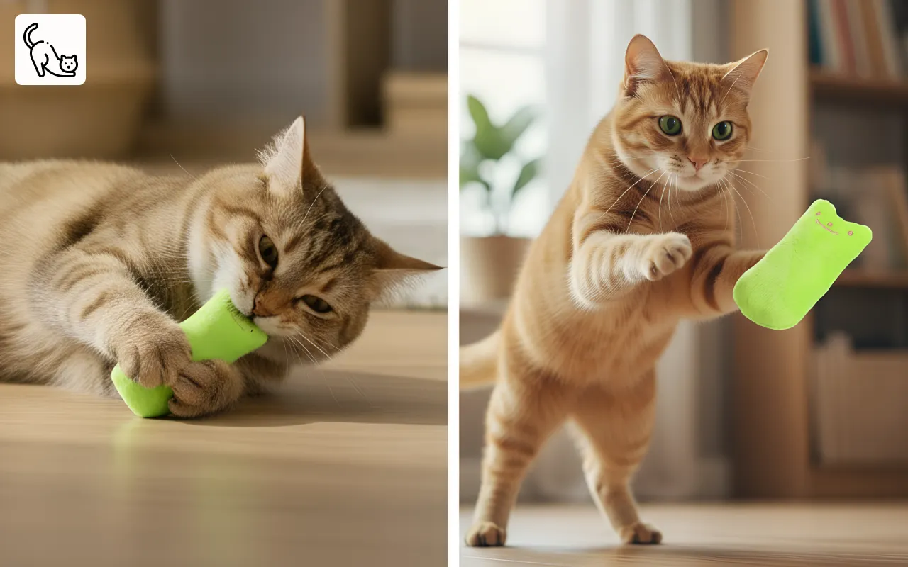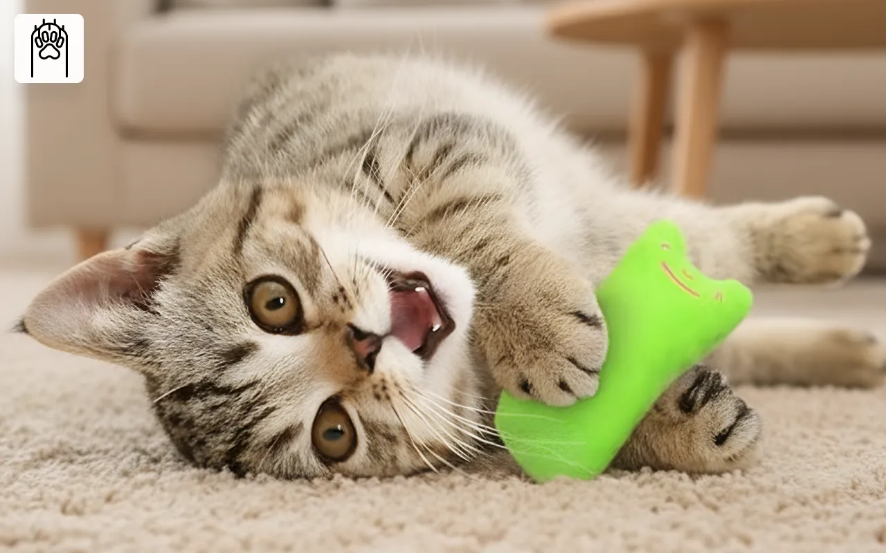 Iarba-mâței din interior atrage atenția și încurajează interacțiunea vioaie. Săriturile și mușcatul îți mențin animalul activ și fericit.