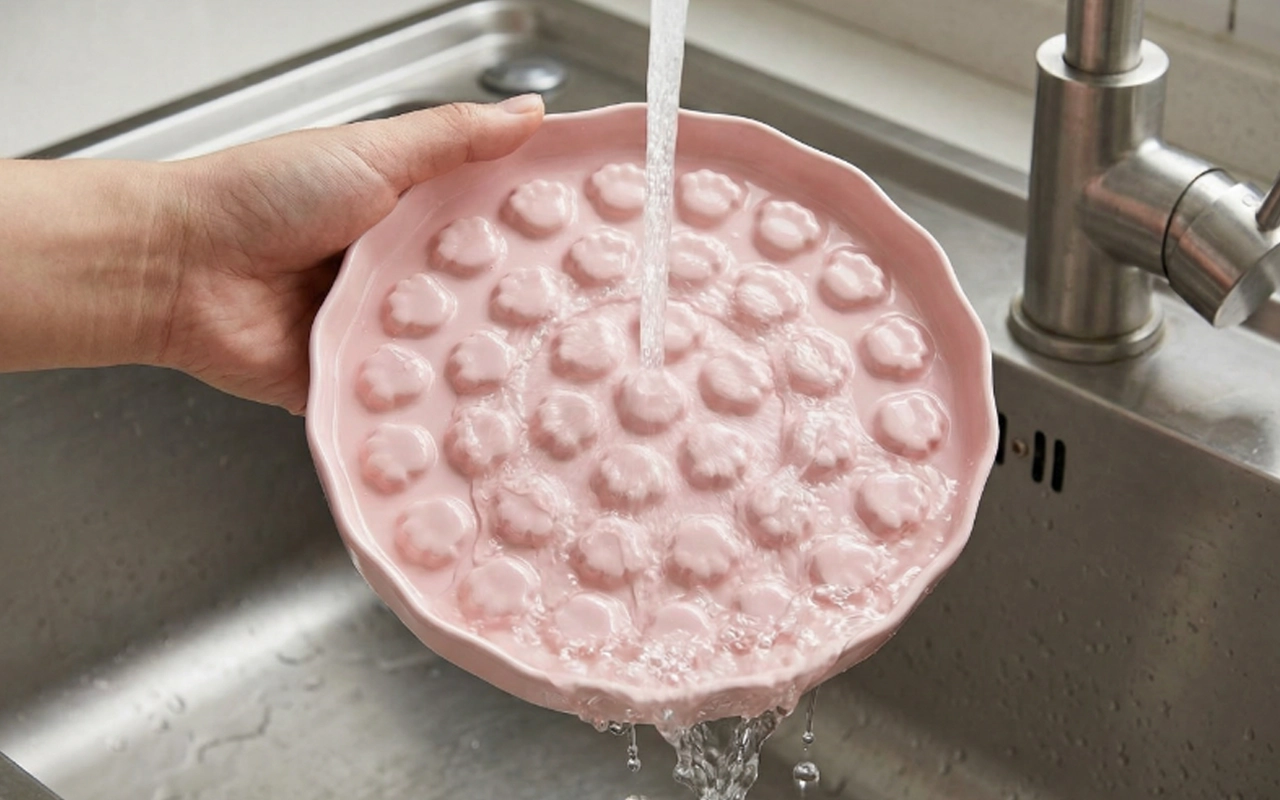 Spălarea necesită doar o clătire rapidă cu apă caldă. Nicio urmă sau murdărie nu rămâne pe acest design.