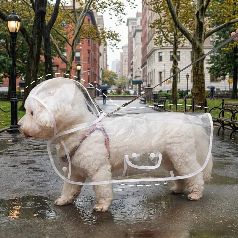Pelerină de ploaie transparentă cu glugă pentru câini