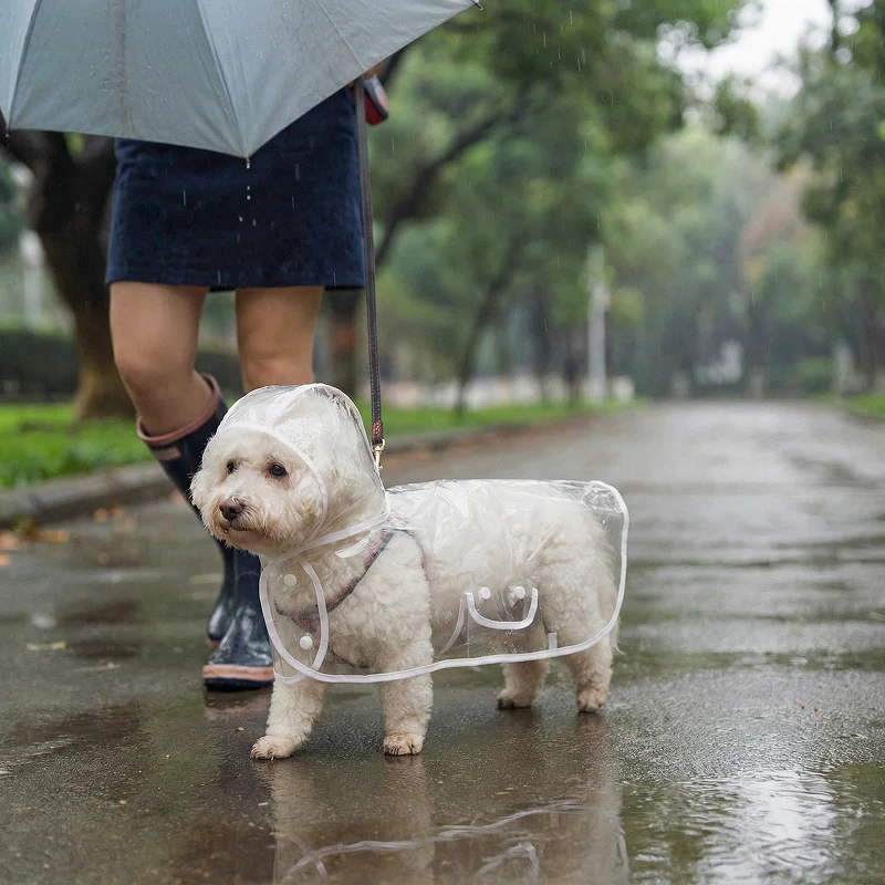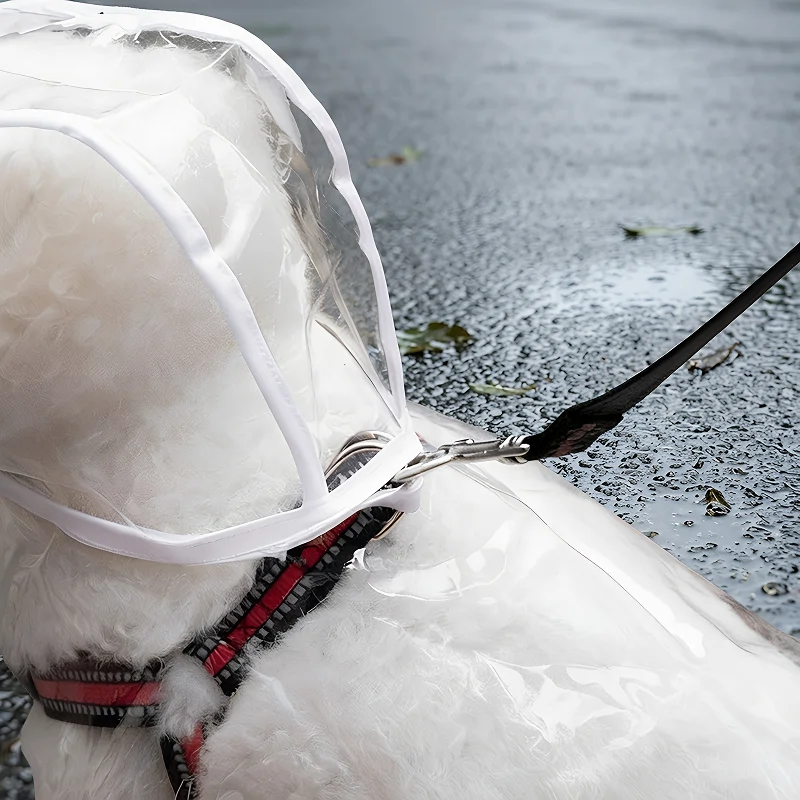 Plimbările pe ploaie nu mai sunt o problemă. Câinele meu se poate mișca liber și rămâne cald. Materialul transparent e și distractiv.