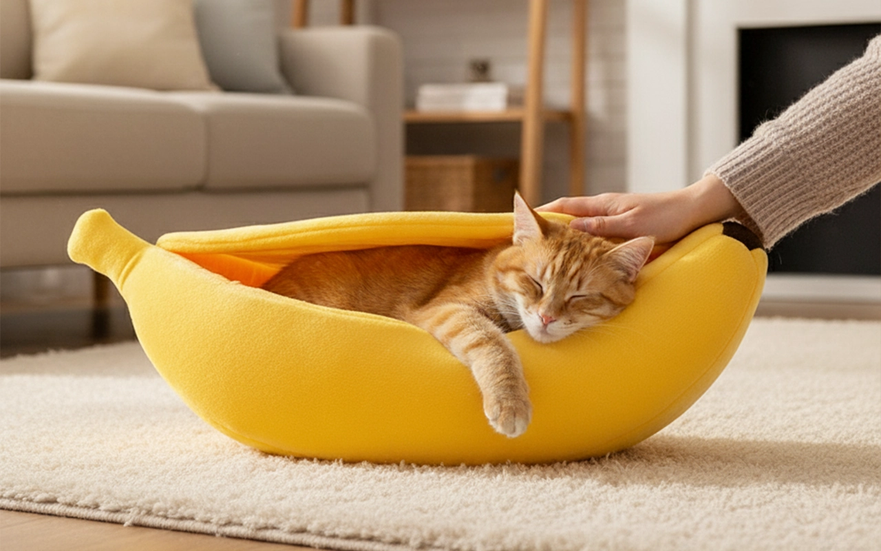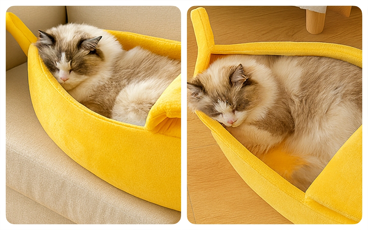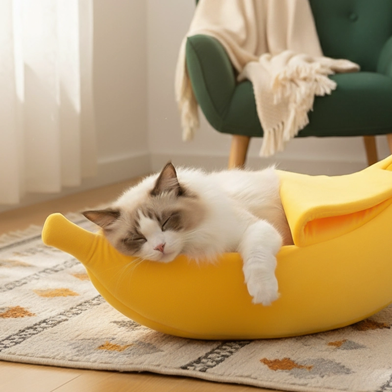 Pat Banana Drăguț pentru Pisici, Culcuș Confortabil pentru Animale