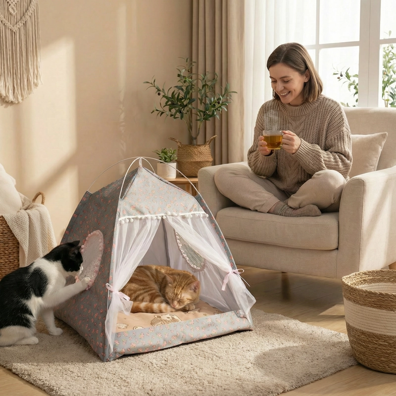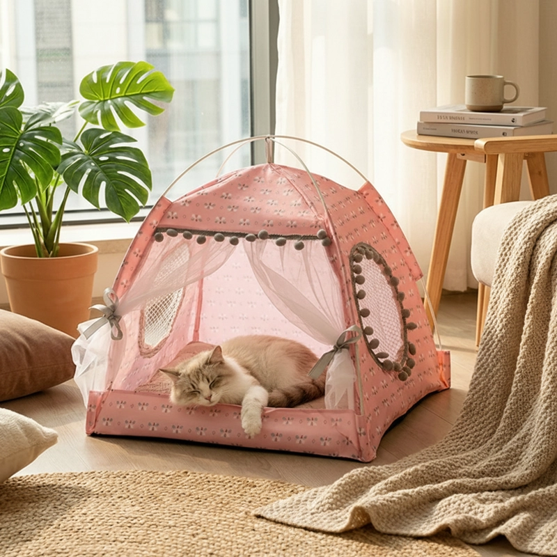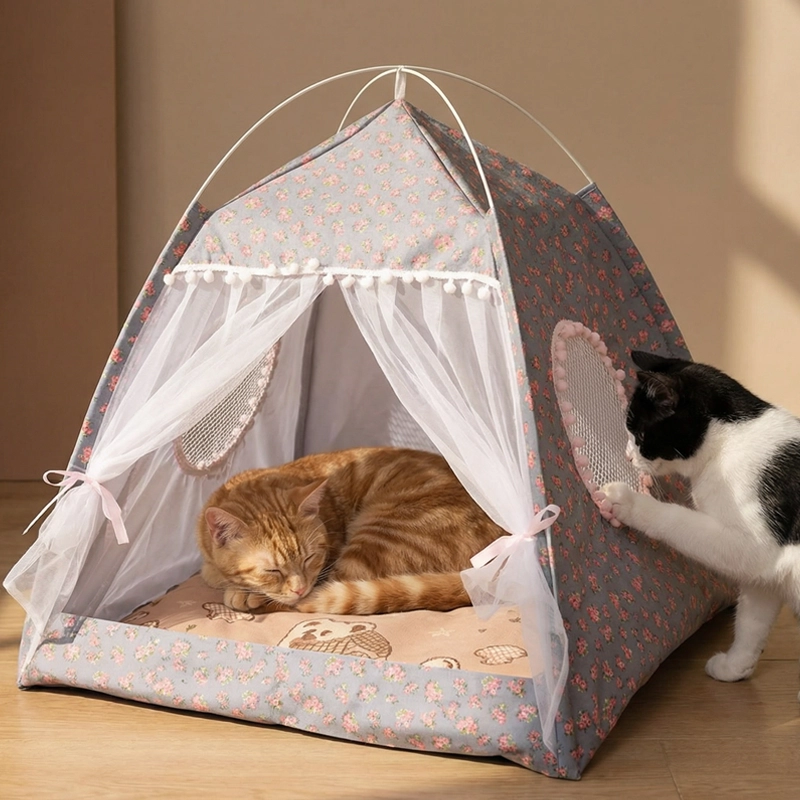 Oferă-i animalului tău un refugiu confortabil care să-i amintească de acasă. Cortul pentru pisici Primdog oferă confort prietenilor blănoși în orice anotimp. Laturile din plasă aerisită lasă briza ușoară să pătrundă cu ușurință. Țesătura moale și designul jucăuș luminează instant orice cameră.