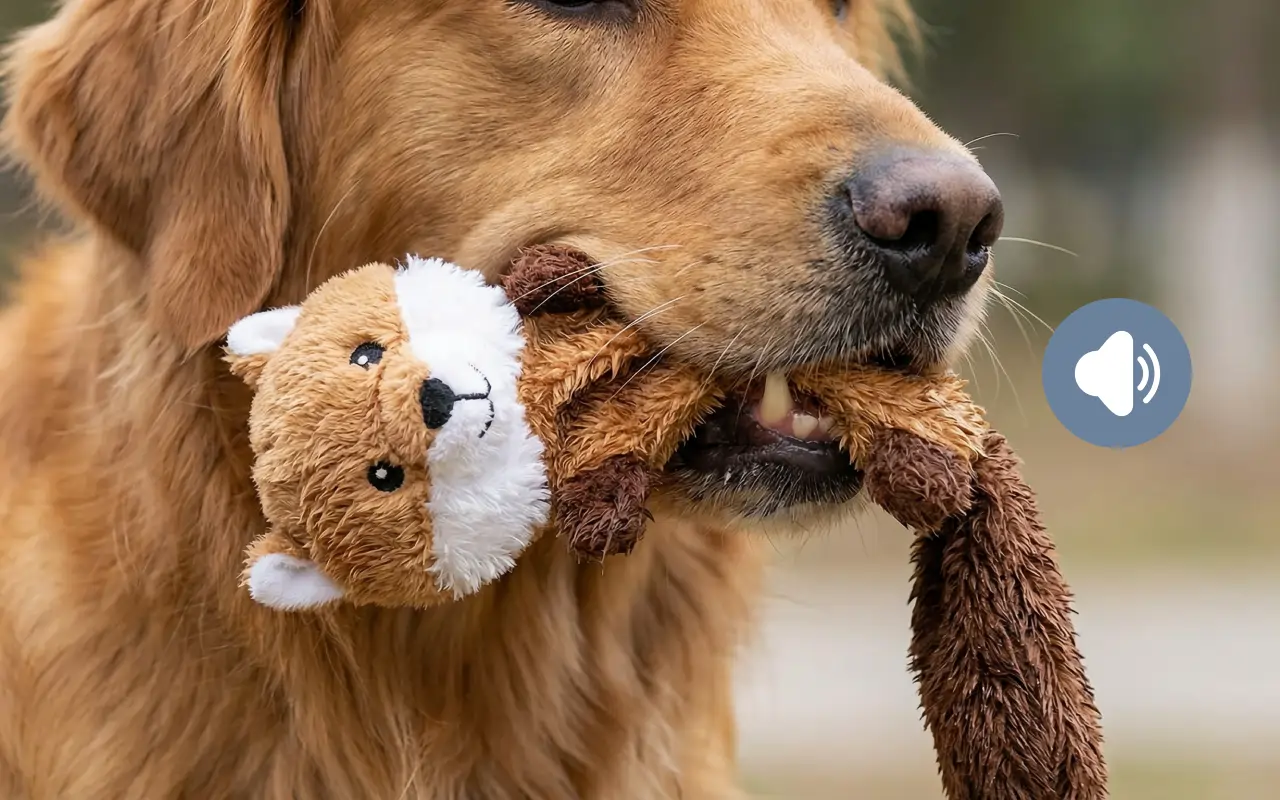 Jucărie de pluș interactivă, scârțâitoare, din fleece, pentru câini