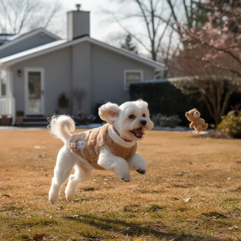 Vesta din fleece se potrivește perfect pentru cățelușul meu! Rămâne călduros la plimbările reci de dimineață și nici măcar nu încearcă să o scoată. Atât de moale!