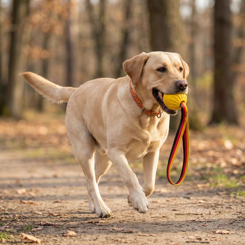 Mânerul din frânghie este perfect ca să mă joc cu câinele meu. Se distrează de minune trăgând!