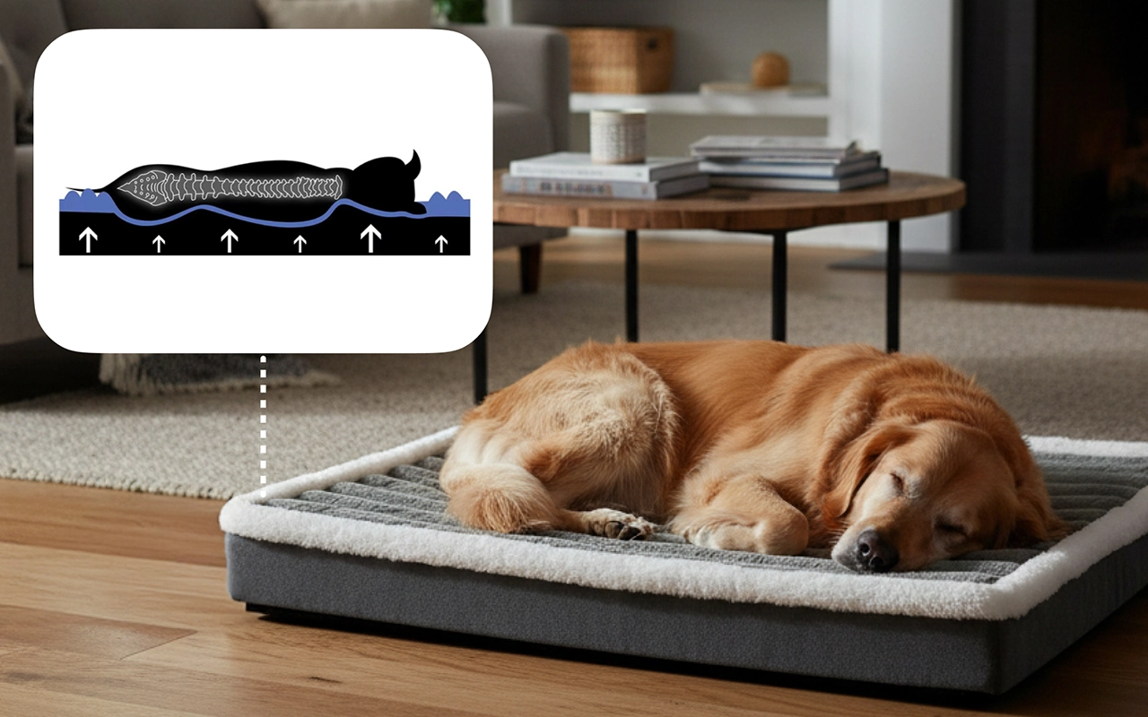 Spuma tip carton de ou susține animalele de companie și ameliorează disconfortul cauzat de presiune. Animalele se bucură de o mișcare mai ușoară și mai puțină rigiditate după trezire.