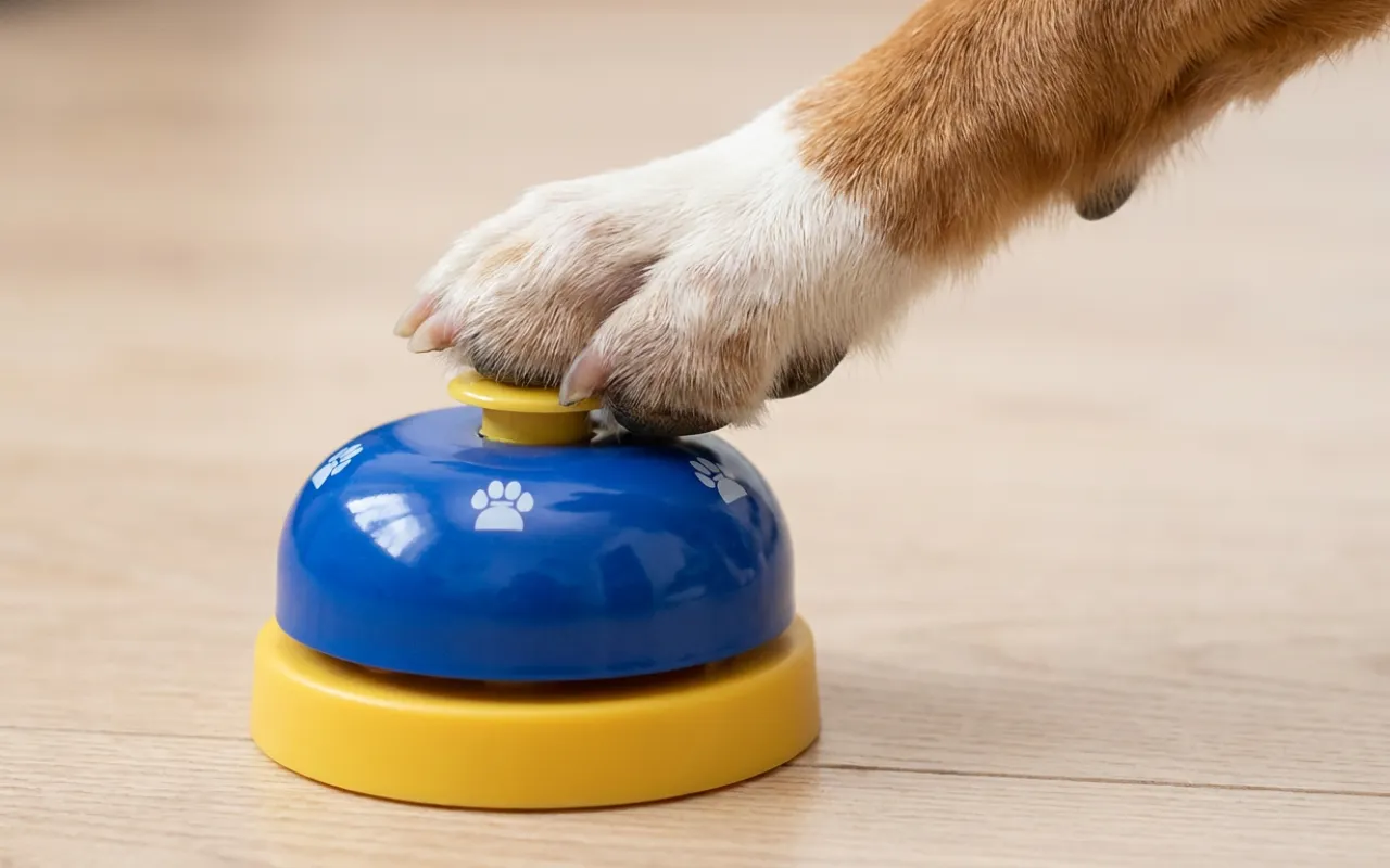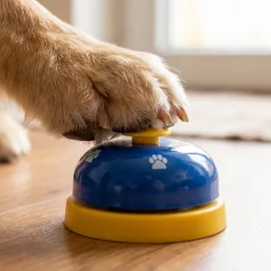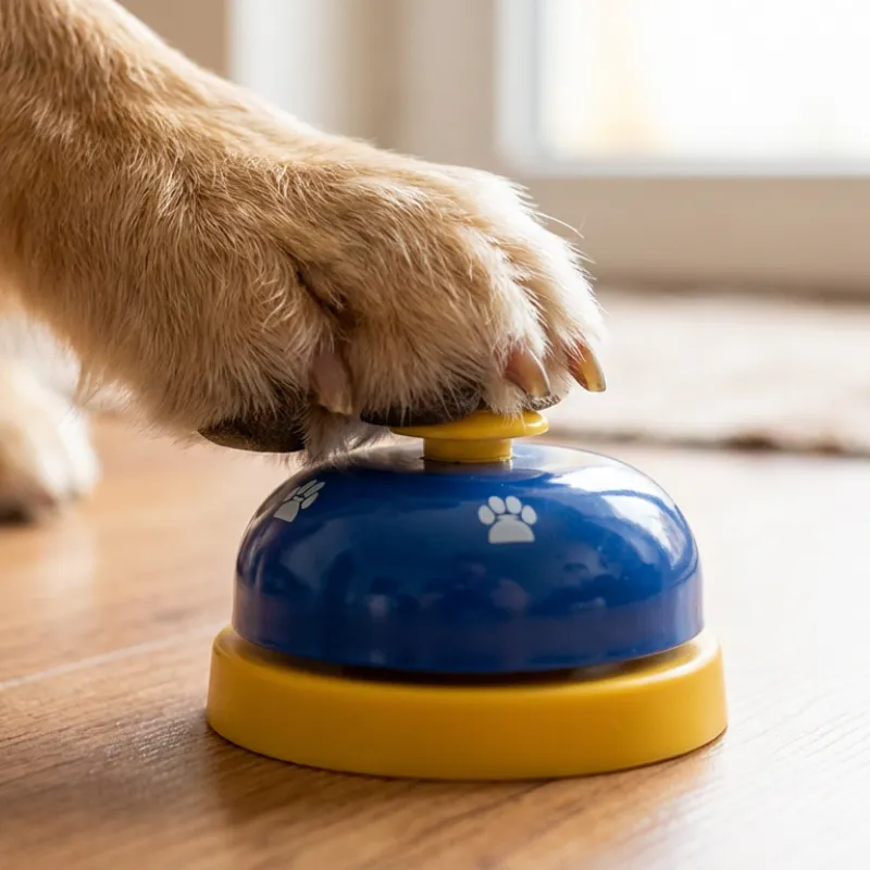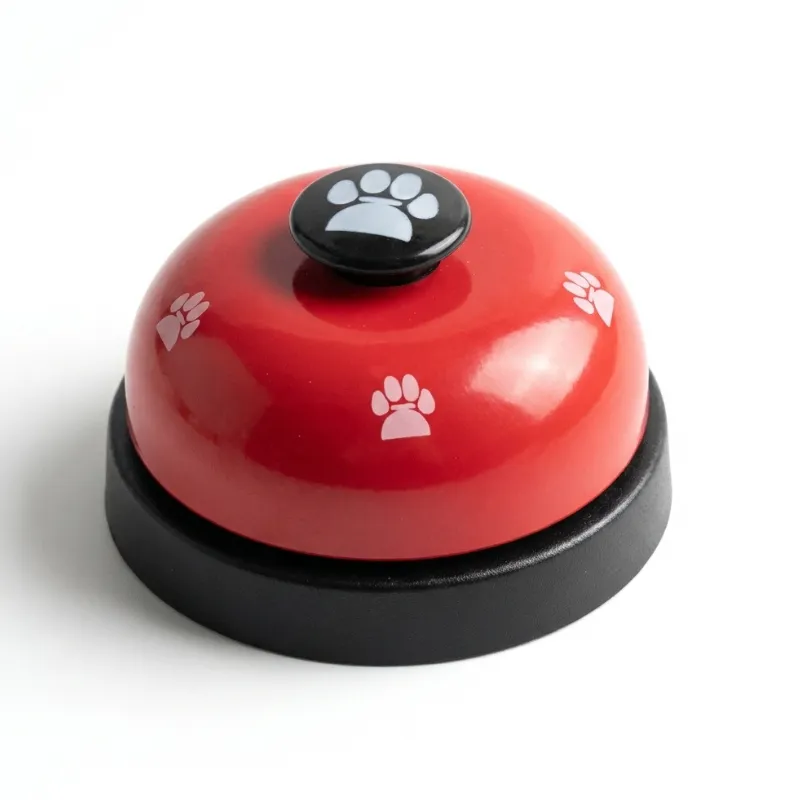 Ținem clopoțelul lângă bucătărie. Ambii câini au înțeles repede că trebuie să îl lovească pentru cină. Sunet clar, bază stabilă și nu mai avem mieunat puternic.