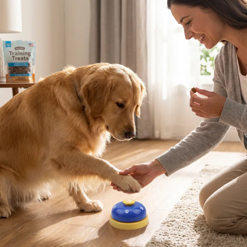Transformă cerșitul zgomotos într-un semnal simplu și liniștit. Jucăria Primdog Bell produce un sunet puternic, pe care îl poate auzi toată lumea. Folosește-l pentru mese, ieșiri la toaletă sau joacă.
