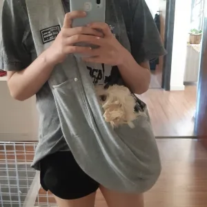 Îmi place absolut acest rucsac! Cățelușul meu se simte atât de în siguranță și confortabil.