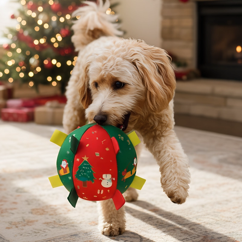 Minge interactivă de Crăciun pentru câini cu clopoțel