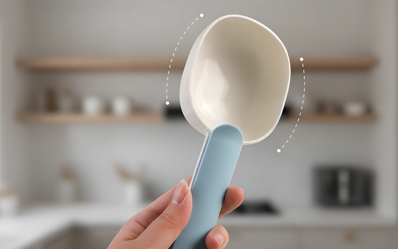 Bucură-te de hrănire curată, păstrând mâinile curate de fiecare dată. Forma curbată face porționarea ușoară și previne vărsarea.
