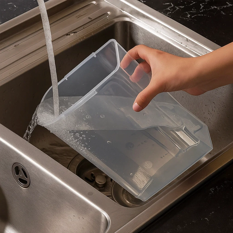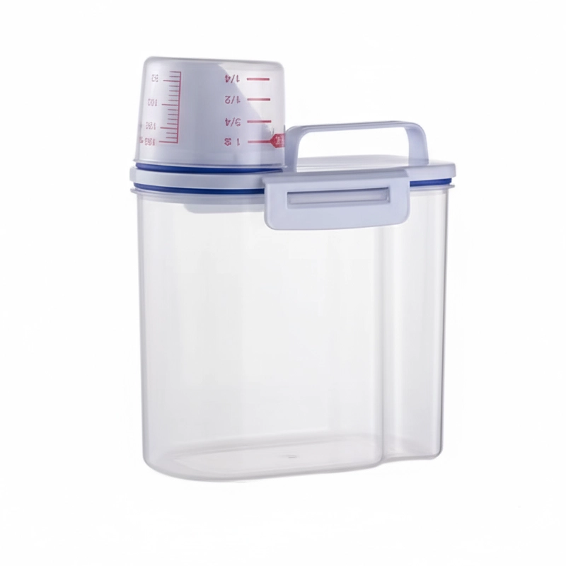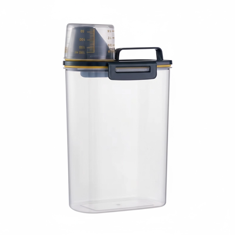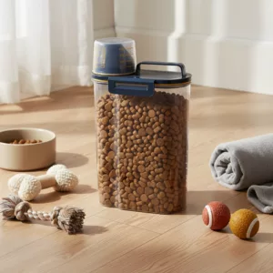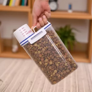 Îmi place că această cutie încape perfect în cămară și menține mâncarea crocantă. Capacul se închide ermetic, iar cana de măsurare ajută la porții.