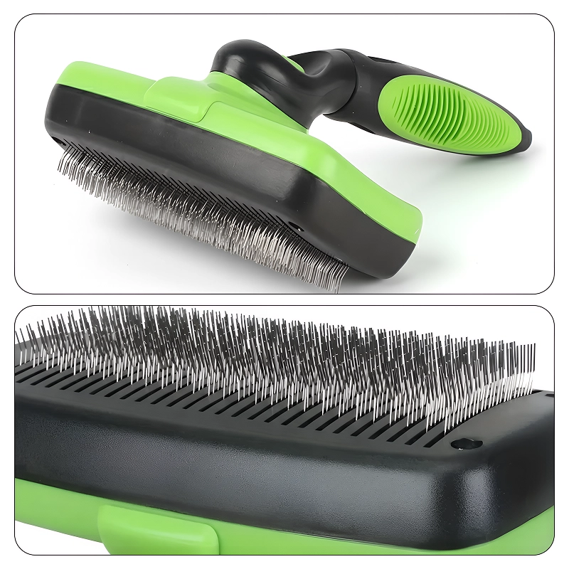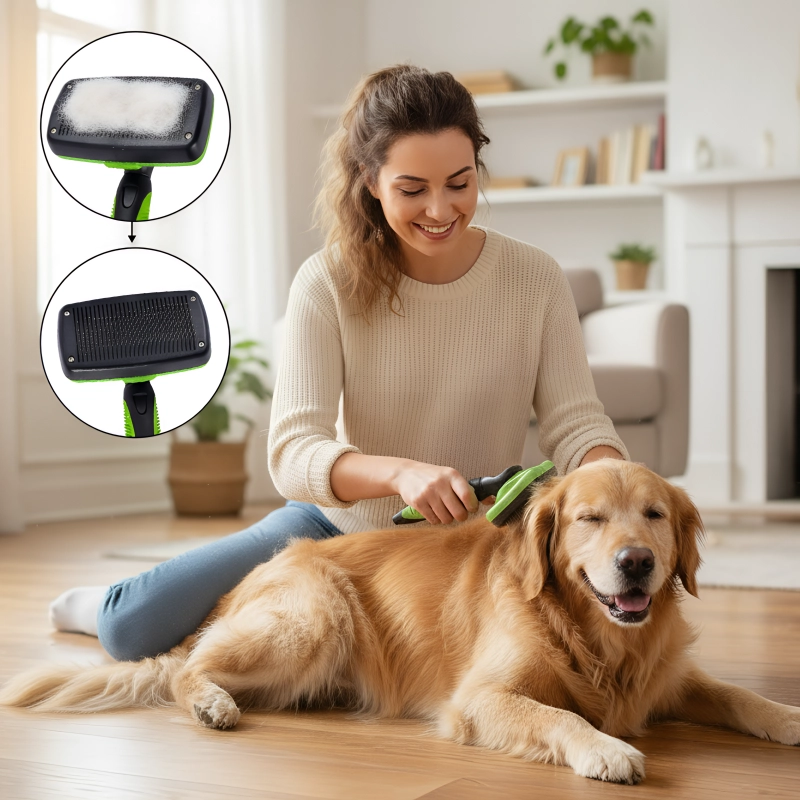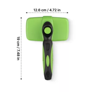 Pudelul meu urăște majoritatea periilor, dar aceasta este suficient de blândă. Curățarea cu o singură apăsare este grozavă—ușor de folosit și nu trage de blană.