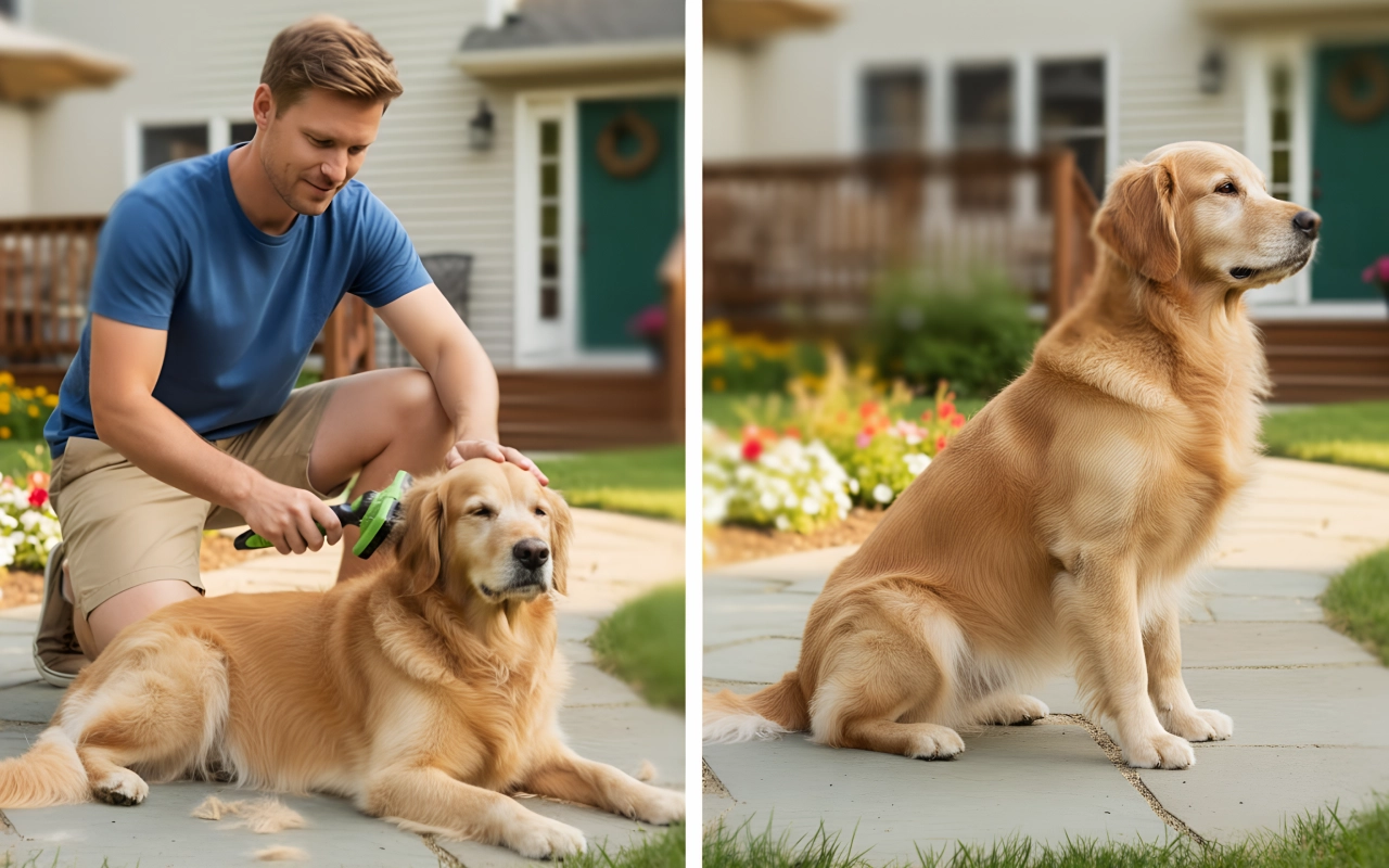 Periatul golden retrieverului meu durează acum jumătate din timp! Chiar dă din coadă când folosesc peria. Canapeaua mea rămâne mult mai curată.