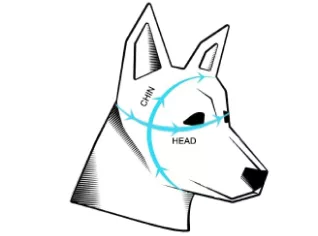 • Înfășurați ruleta de măsurat în jurul capului câinelui, orizontal, de jur împrejurul ochilor.