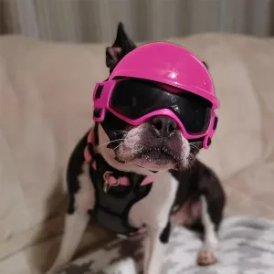 Tocmai am încercat combinația de cască și ochelari pe shih tzu-ul nostru, și le-a purtat tot drumul cu mașina! Design grozav, plus că a arătat adorabil.