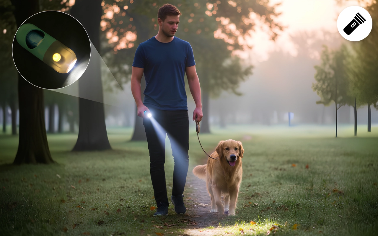 Găsește ușor deșeurile în timpul plimbărilor de seară sau dimineața devreme. Fără locuri ratate sau griji că lași murdărie mai târziu.