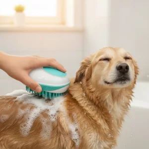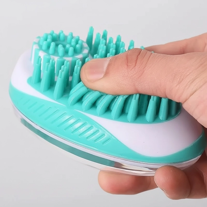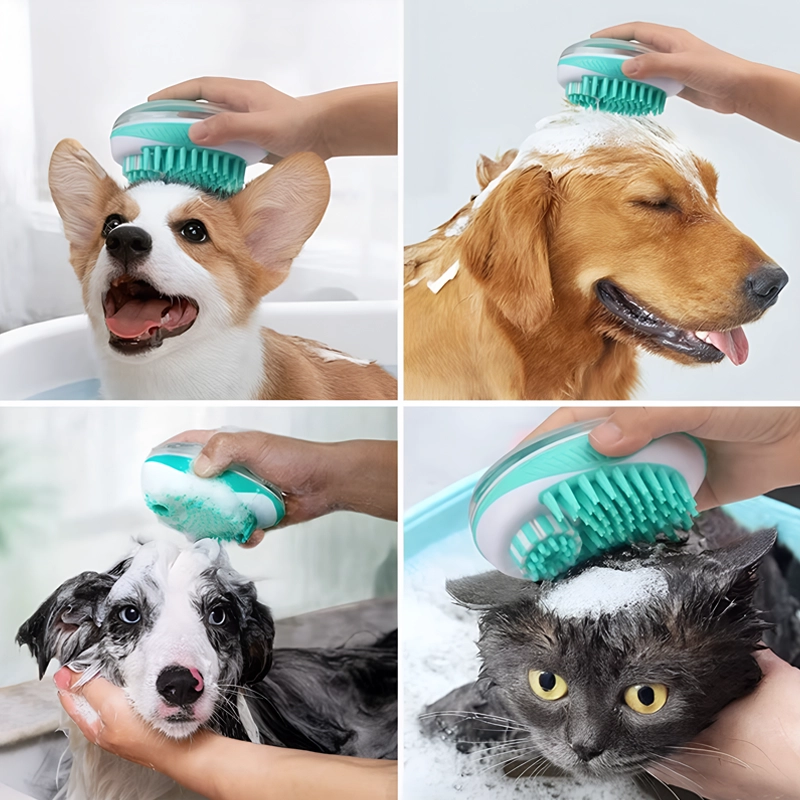 Perie de baie pentru câini din silicon cu dozator de șampon