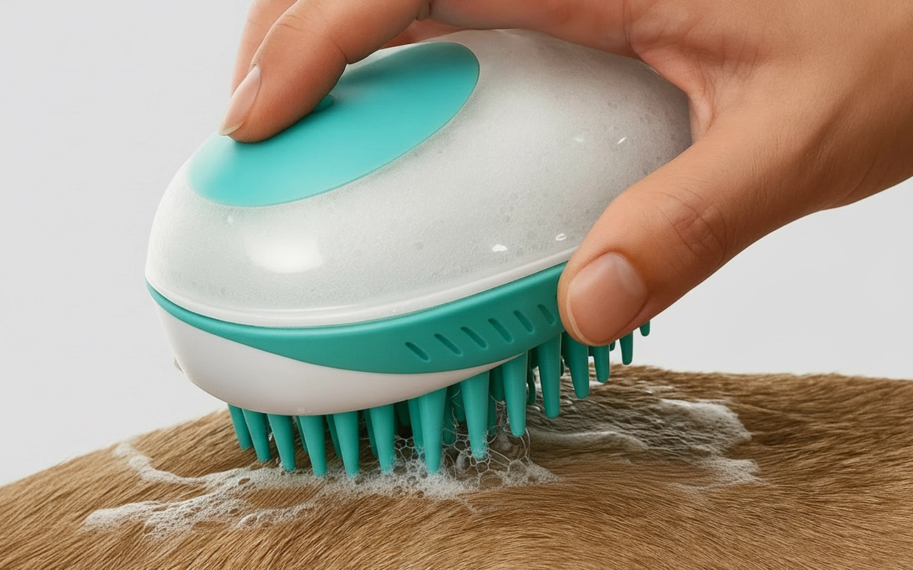 Nu mi-am văzut niciodată border collie-ul atât de relaxat în timpul băii. Peria este delicată, dar curăță toată murdăria. Spuma apare rapid și e distractiv de privit.